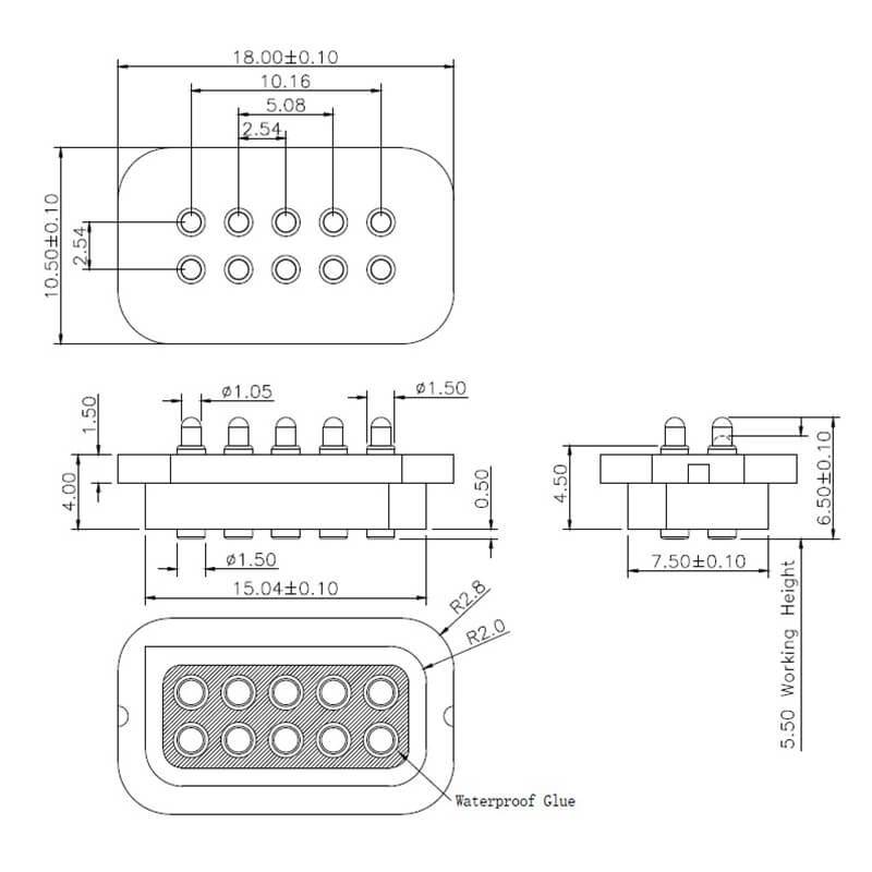 10Pin, 2.54mm Pitch, 5.50mm Working Height, C1567-10