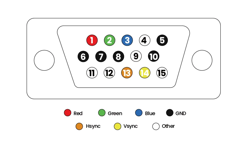 Therefore, this 15-pin connector VGA pinout can transmit signals across different voltages. The configuration of 15 pins connector of the VGA cable is as follows: