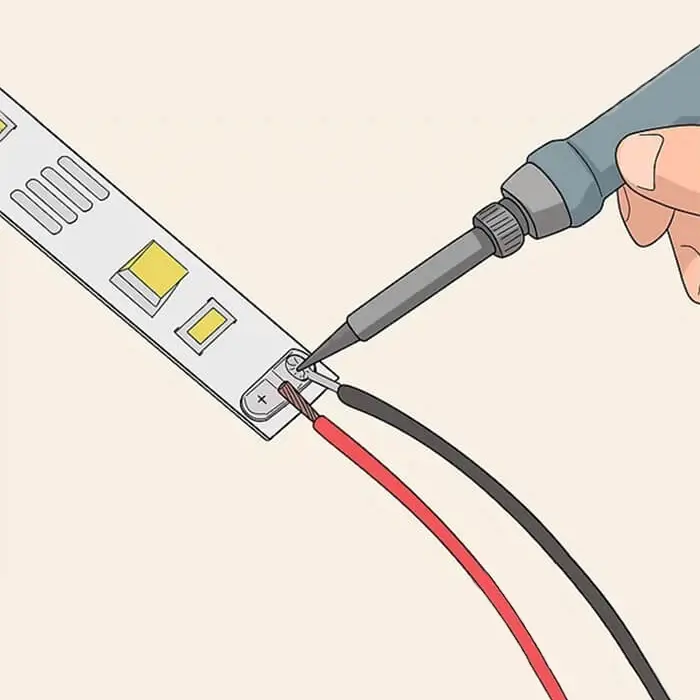If you need to connect two LED strips without connectors, you can do so by soldering the strips together. First, cut the strips to the desired length and remove any excess wire. Apply a tiny amount of soldering to the wires to tin them next. Then, align each strip’s positive (red) wires and solder them together. Finally, do the same with the negative (black) wires. Your LED strips should now be securely connected!