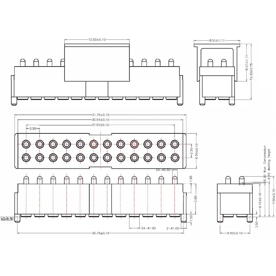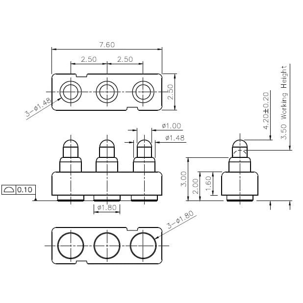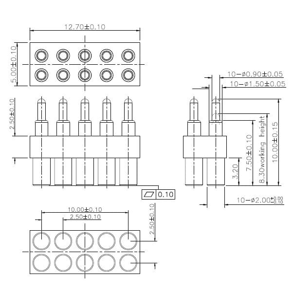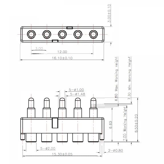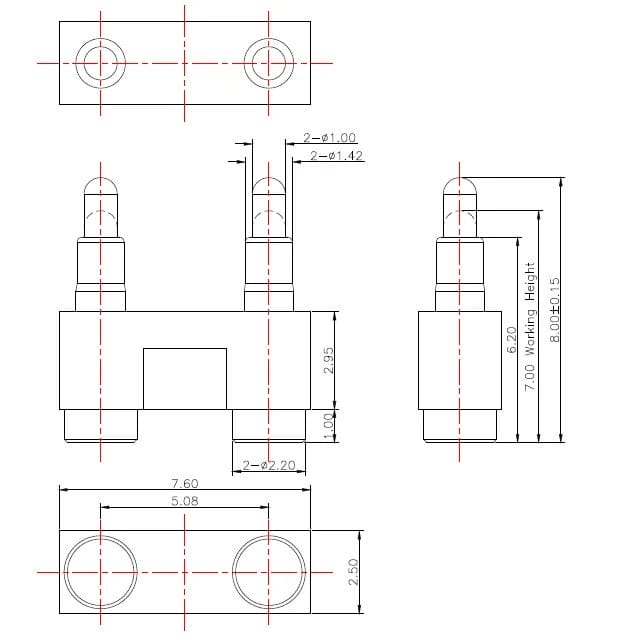 8Pin, 2.54mm Pitch, 4.40mm Working Height, NC691-08RB