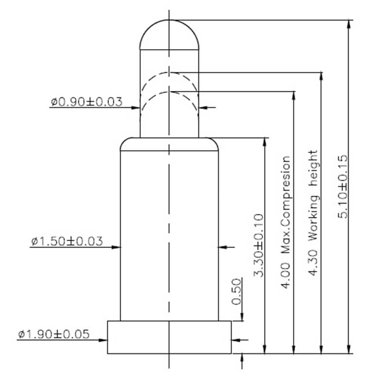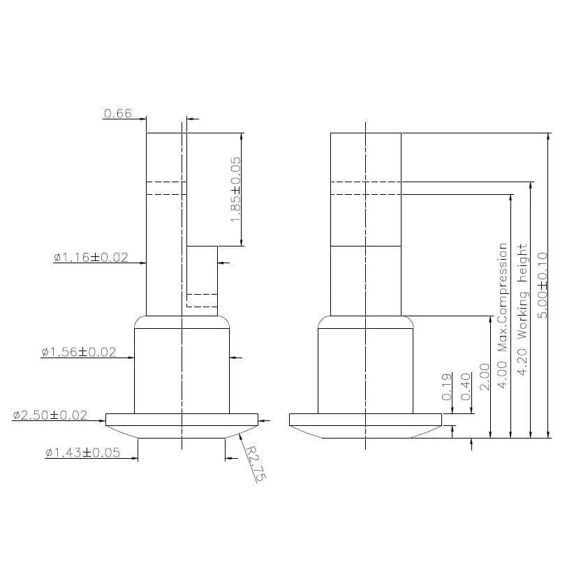 1.60mm, 1 Pin, 1.20mm Working Height, C2071-01