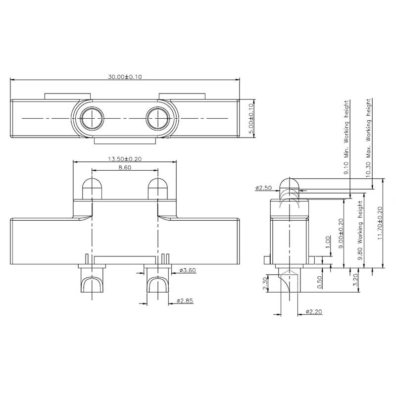 2Pin, 8.60mm Pitch, 9.80mm Working Height, C1353-02P