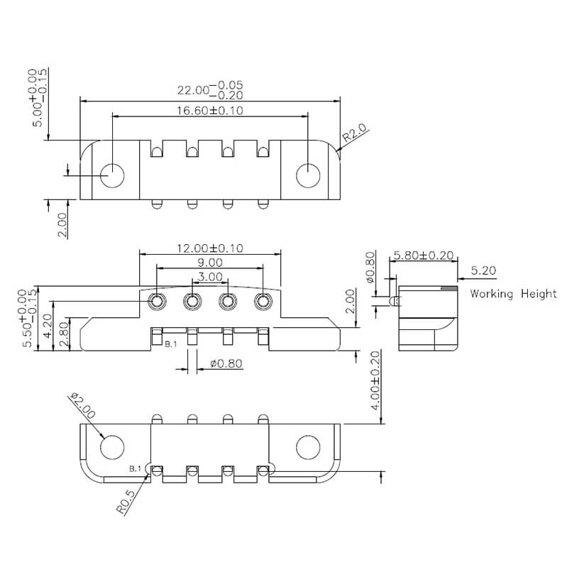 4Pin, 3.00mm Pitch, 5.20mm Working Height, C2241-04R
