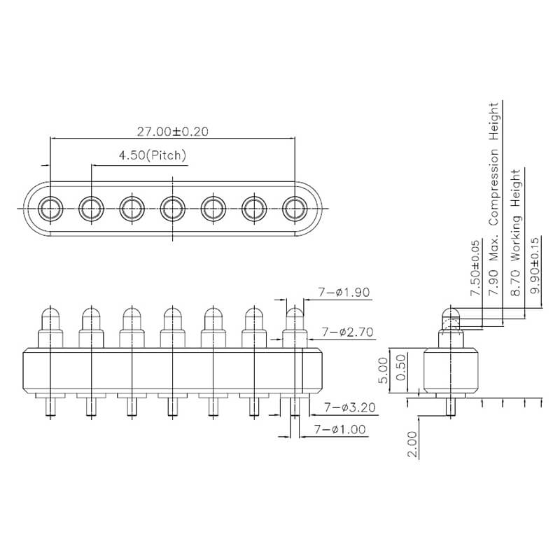 7Pin, 4.50mm Pitch, 8.70mm Working Height, NC3356-07PA