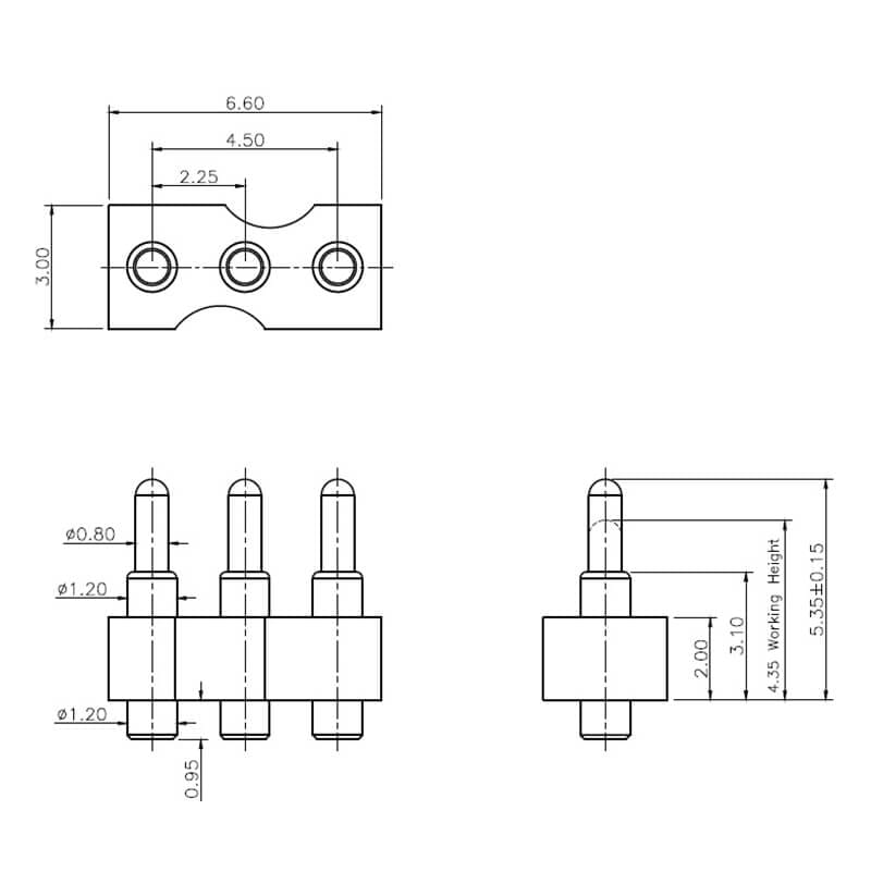 3Pin, 2.25mm Pitch, 4.35mm Working Height, NC3968-03RA
